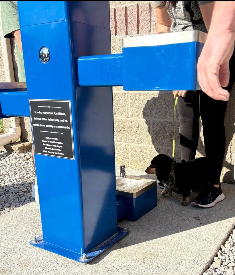 In loving memory of Kami Moon, a devoted supporter of our foundation. In honor of her father, Kelly, and his dedicated service to our country and community, a drinking fountain has been donated to Memorial Park in Berlin Heights for the enjoyment of all patrons, two-legged and four-legged alike.
